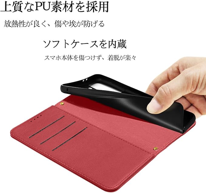 【素材】: (1)外:厳選されたレトロPU革で丁寧な縫製プロセスを施し、手触りが優しくて、落ち着いた色付けで汚れにくくて、使い勝手もとても。 (2)内:柔軟性が良いTPU材質のスマホホルダーです、着脱が容易,本体へ360°保護を提供することになります。放熱性が良、滑りにくく、指紋、油分などもつきにくく。ひとつひとつ職人の手で仕上げました。より良い素材と選ばれた職人が出会うことにより、最高級の革製品が完成します。