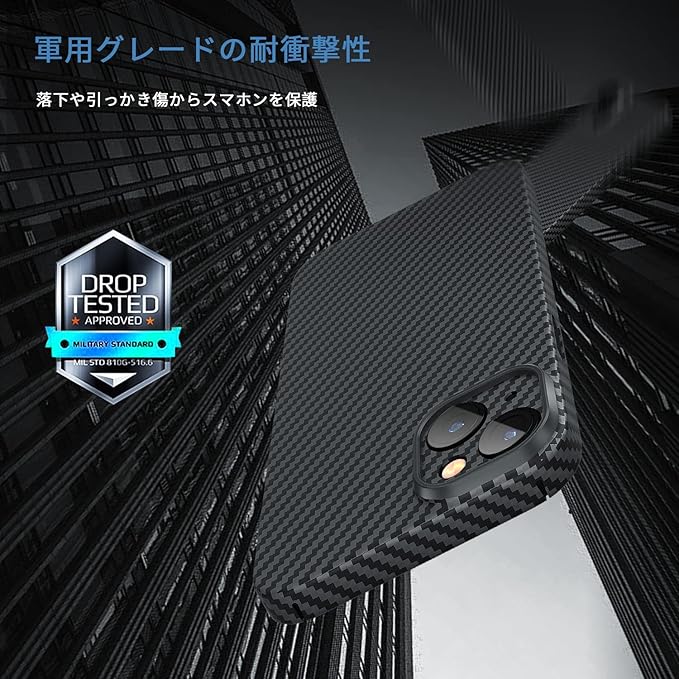 [素材]100%精選の1500Dアラミド繊維から織られたアラミドクロスを真空成型して、スマホケースを成型させた後、コーティングやエッジの処理などをします。アラミド繊維でケースを仕上げるまでに、約30プロセスが必要となっています。軽量、極薄、擦り傷防止、色褪せない、信号干渉なし等の特徴を有しています。