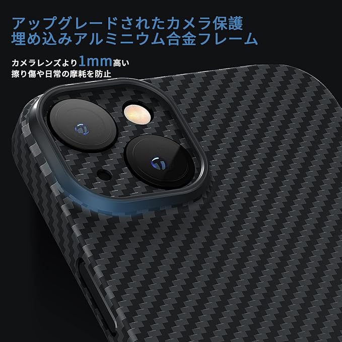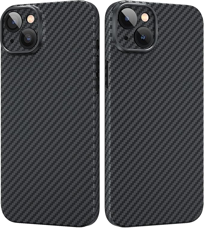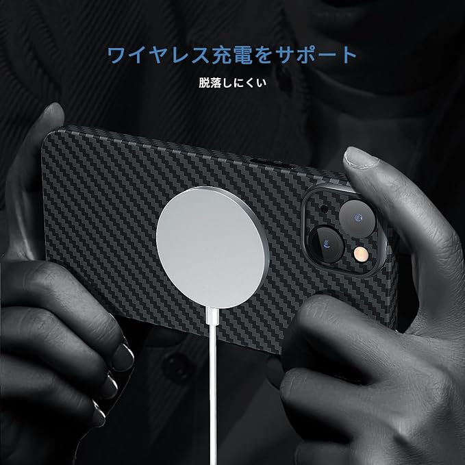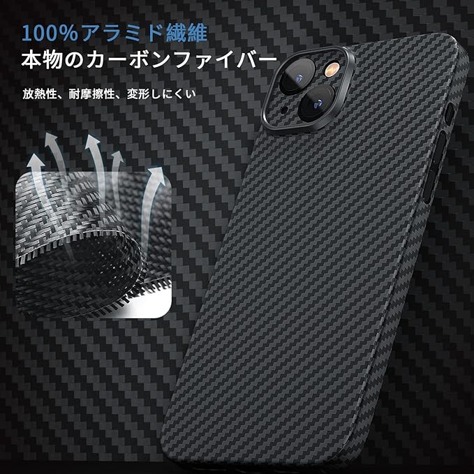 iPhone 14対応アラミド繊維ケース memumi 0.5mm極薄 耐衝撃 保護カバー ワイヤレス充電対応 ミニマリスト シンプル 6.1インチ (ブラック)