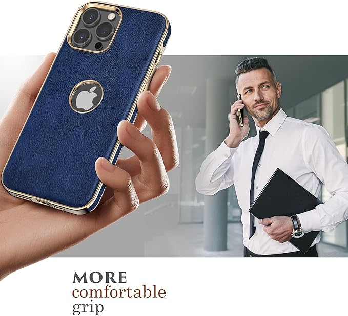 LOHASIC iPhone 14 Pro Max用ケース ロゴビュー ヴィンテージ PUレザー ラグジュアリー エレガント ProMax 電話ケース メンズ レディース 滑り止め グリップ 保護 TPUバンパー 6.7インチ 5G 2022 - ブルーゴールド