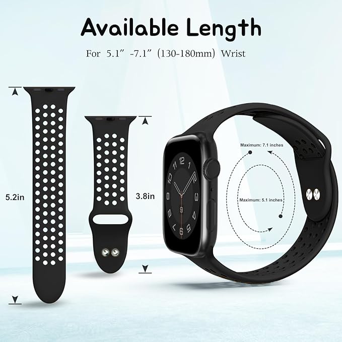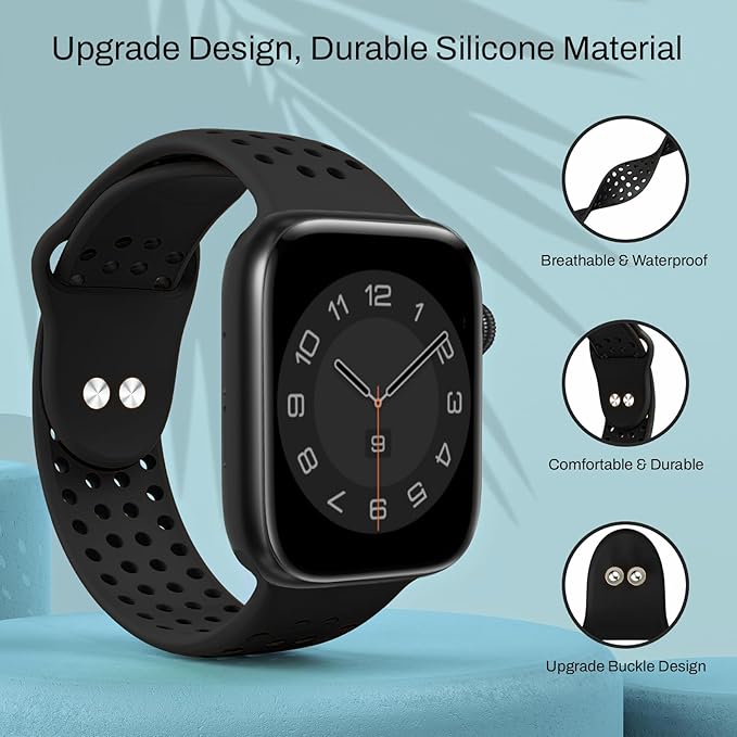 コンパチブル Apple Watch バンド アップルウォッチ バンド 38mm 40mm 41mm 42mm 44mm 45mm 49mm for iWatch Ultra 2/Ultra SE Series 9/8/7/6/5/4/3/2/1 に対応 スポーツバンド 交換ベルト シリコン製 柔らかい 通気 耐衝撃 防汗 女性 男性 (ブラック, 42/44/45/49mm S/M)
