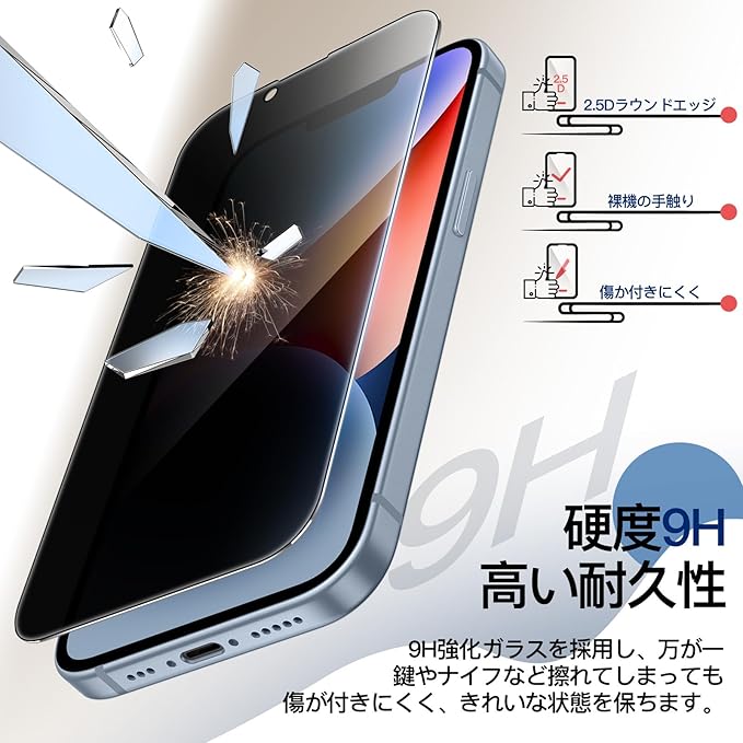 [優れた品質] 表面に傷がつきにくい9Hの高硬度強化ガラスフィルムは、日常の摩耗、軽微な、または偶発的な落下
