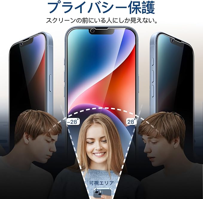 [プライバシー保護] iPhone 16e 2025, iPhone14 6.1インチ専用に完全に適合します。画面が真正面にいる人だけが見え、周りの人々に覗かれることを防止でき、プライバシーを効果的に守ります