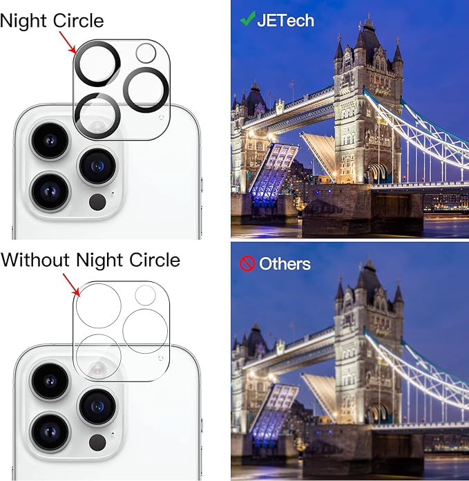 JETech iPhone 14 Pro 6.1インチ/iPhone 14 Pro Max 6.7インチ用 カメラフィルム レンズ 9H強化ガラス 高透過率 傷つけ防止 夜景撮影に影響なし 3枚セット