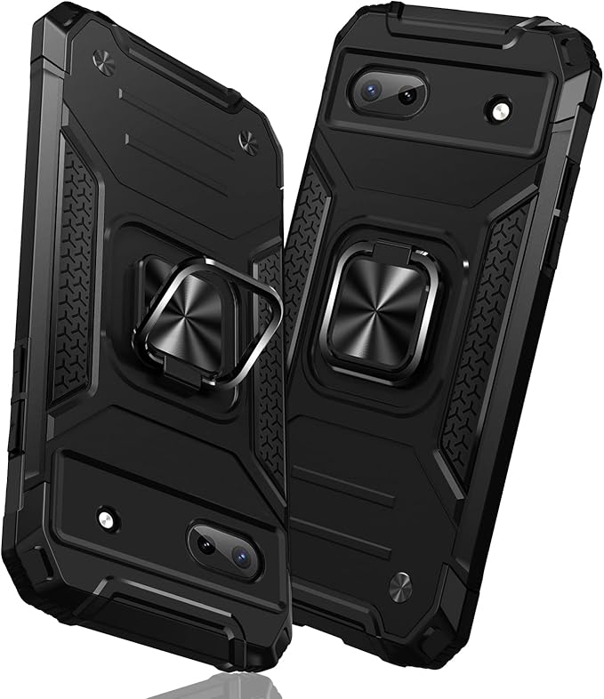 TMUJWS Google Pixel 6A 用ケース リング 衝撃吸収 耐衝撃 TPU+PCバンパー 二重構造 米軍MIL規格 全面保護カバー 滑り防止 車載ホルダー対応 擦り傷防止 滑り止め 軽量 薄型 グーグル ピクセル 6a 用カバー 6.1インチ 指紋防止 耐久 おしゃれ 人気 携帯カバー 黒 MZ65-89