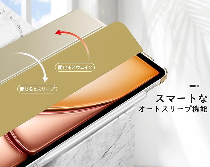 MoKo iPad Air 11インチ ケース(2025/2024)、iPad Air5/4 10.9インチ ケース iPad Air(M3/M2) 11インチ iPad Air第5/4世代 10.9 カバー 半透明 オートスリープ ApplePencilPro/第2世代ペアリング&充電対応 三折りスタンド PUレザー 裏地マイクロファイバー スマートケース ChampagneGold