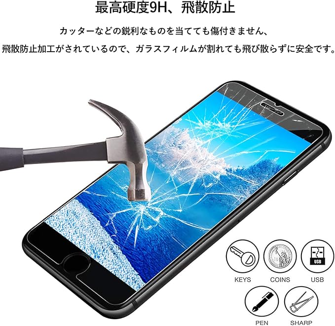 iPhone8 用 ガラスフィルム iPhone7 用 フィルム 強化 ガラス 【2枚】 硬度9H 耐衝撃 高透過率 飛散防止 指紋防止 気泡ゼロ 自動吸着 貼付け簡単 汚れに強い スクラッチ防止 アイフォン8 / 7 用 液晶 保護フィルム 4.7インチ