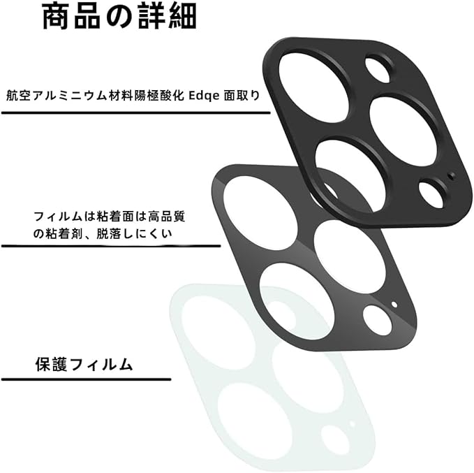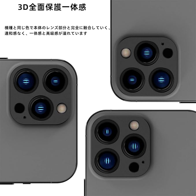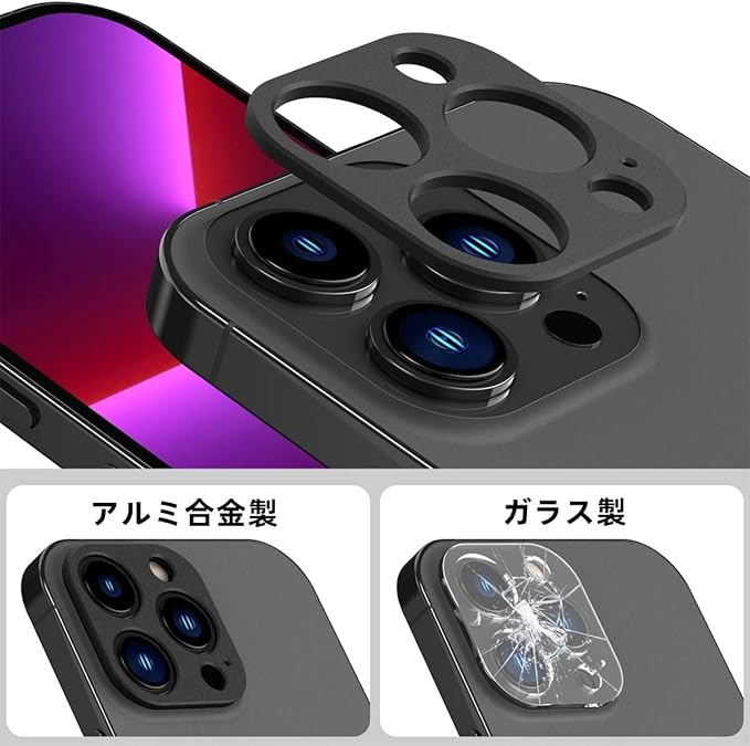 【2枚セット】iPhone 14 Pro / iPhone14 Pro Max 用 カメラレンズカバー カメラ保護 フィルム iPhone 14 Pro / iPhone14 Pro Max 対応 アルミ合金製 耐衝撃 キズ防止 薄型 ケース干渉せず カメラ全体保護 ブラック
