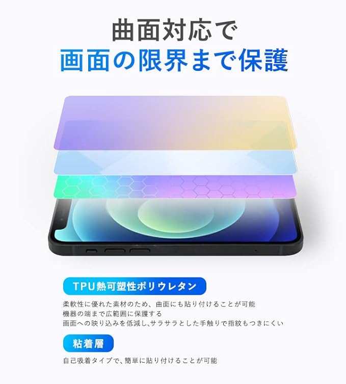 外光の反射を抑え、指紋がつきにくい表面処理。そして傷修復機能、衝撃吸収機能を備えております。