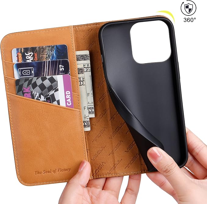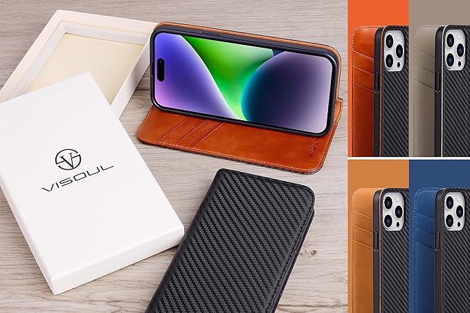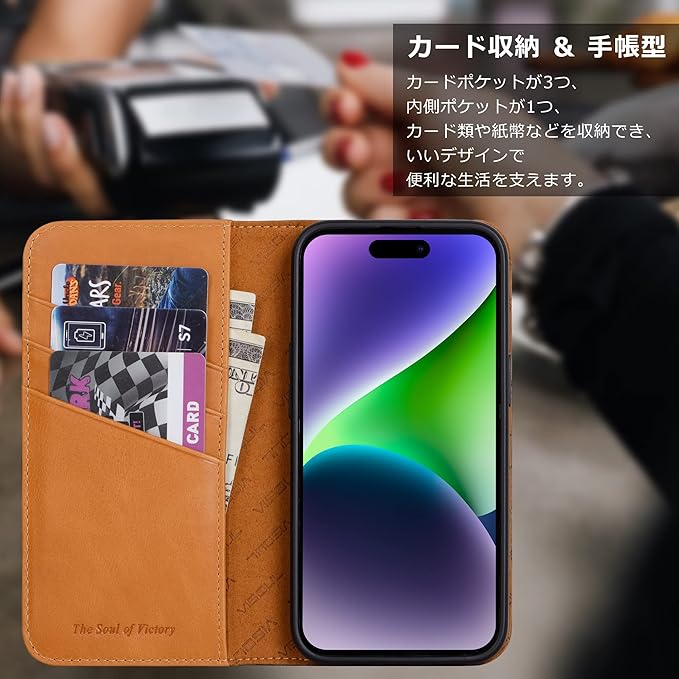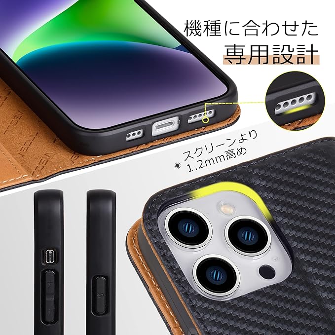 VISOUL iPhone 14 Pro ケース 手帳型 本革 レザー 衝撃吸収TPU素材 全面保護 マグネット式 カード収納 多機能 アイフォン14 Pro ケース 横置きスタンド機能付き手帳型ケース 2022年発売 iphone 14 Pro 対