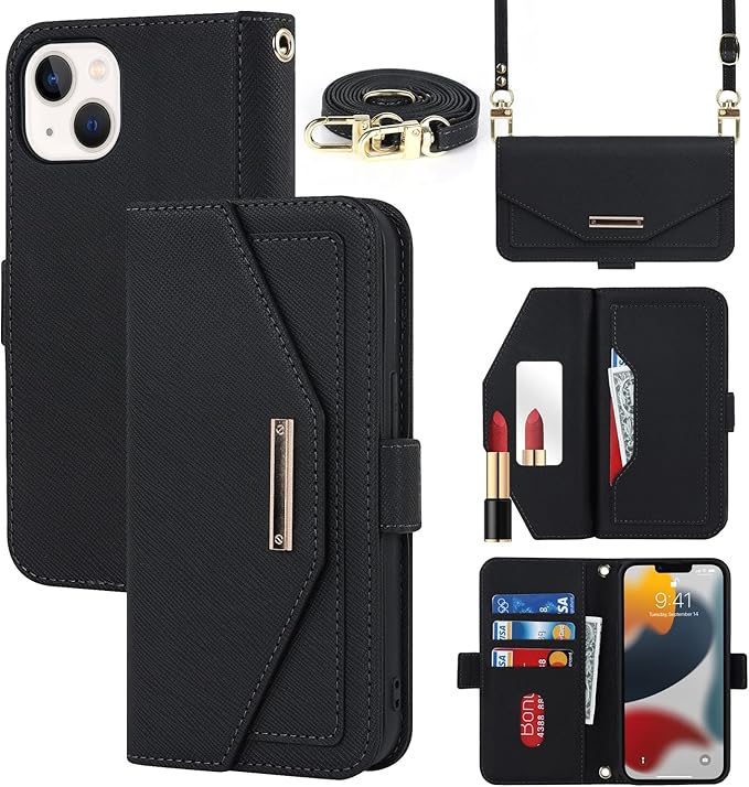 iPhone13ケース / iPhone13 ケース 手帳型 ショルダー 鏡付きケース 鏡ケース ミラー mirror 鏡 レディース 女性 鏡付き ミラーケース クロスボディ アイホン iPhone 13 ケース 手帳型 カバー アイホン13 アイフォン13 アイフォン 13 ケース iPhone13手帳ケース 適用 case 【iCoverCase】 ストラップホール付き 留め具 カード収納 バッグ スタンド ミラー付き 化粧鏡 かがみ 鏡 ロングストラップ マグネット 留め具 肩がけ 首掛け 斜め掛