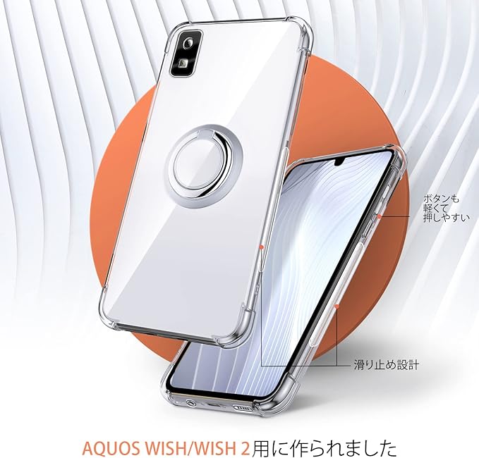 Rockaway AQUOS wish / wish2 ケース SHG06 SH-51C ケース リング付き 耐衝撃 すり傷防止 四隅がエアクッション構造 スタンド機能 軽量 薄型 TPU ソフト 透明 ケース アクオスwish/wish2 カバー -クリア