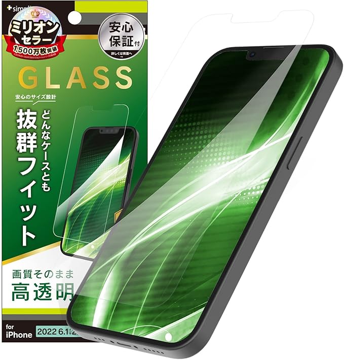 Simplism シンプリズム iPhone 14 / iPhone 13 / 13 Pro ケースとの相性 透明 画面保護強化ガラス TR-IP22M2-GLS-CC