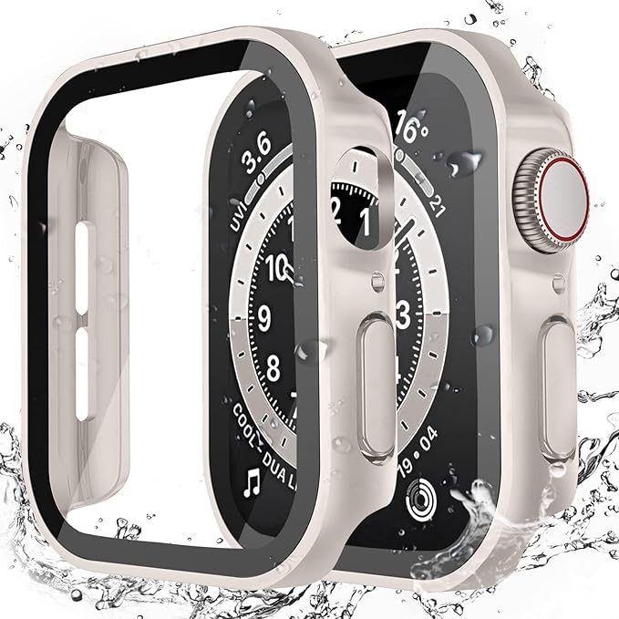 LISAMER 対応 Apple Watch ケース Series 10/9/8/SE/7/6/5/4 44mm アップルウォッチ用 ケース 防水 一体型 新デザイン 3D直角エッジ 超薄型 PC+ガラス素材 高透過率 対応 Apple Watch カバー 全面保護 装着簡単 高耐久 耐衝撃 スターライト