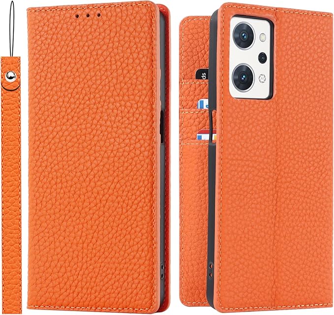 Oppo Reno7 A ケース手帳型 OPPO Reno9 A ケース Pelanty 牛革製品 本革レザー reno7a 財布型カバー reno9a カード収納 スタンド機能 内蔵マグネット 手作り柔らかい オッポ リノ 7A/9A 日本版 スマホケース ストラップ付 ヘッドフォンケーブル 耐衝撃 オレンジ