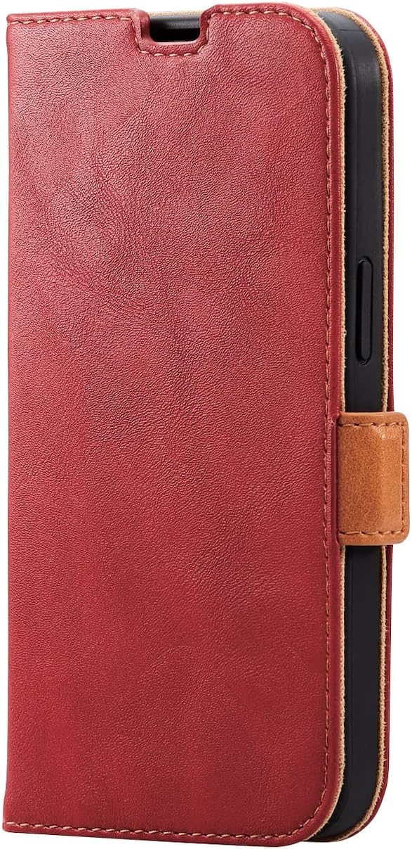 エレコム iPhone 14 / 13 ケース カバー 手帳型 耐衝撃 カードポケット付き マグネット開閉 ステッチ ストラップホール付き レッド PM-A22APLFYRD