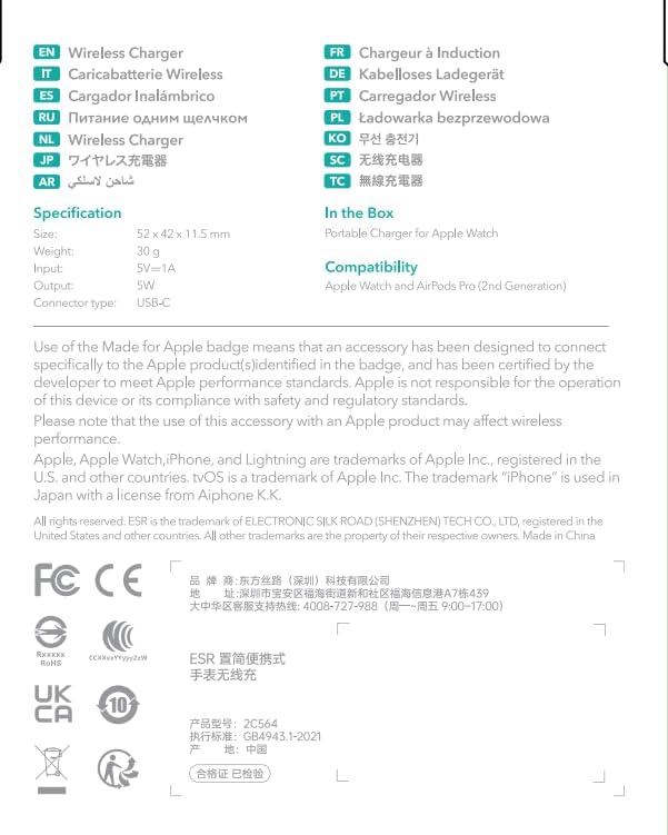 ESR Apple Watch充電器 マグネット式 5W高速充電 MFi認証取得 アップルウォッチ 充電器 充電ドック 小型 USB-C ワイヤレス充電 Apple Watch Series Ultra/SE/8/7/6/5/4/3/2/1用 持ち運び便利 ケーブル不要 ホワイト