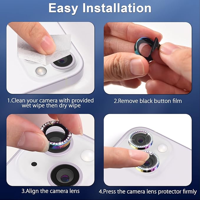 【適応機種】iPhone 14/14 PlusとiPhone 15/15 Plusのために設計されたカメラレンズ保護フィルム、購入前に自分の携帯電話の機種をチェックしてください。カメラレンズフィルムは色の組み合わせが豊富で、違和感なくスタイリッシュな外観をもたらします。製品に装飾ダイヤモンドが脱落したり、変形したり、傷がついたりする問題があれば、メールでご連絡ください、私たちはあなたに解決策を提供します。お客様を満足させることは私たちの追求であり、私たちはお客様に良質なサービスを提供します