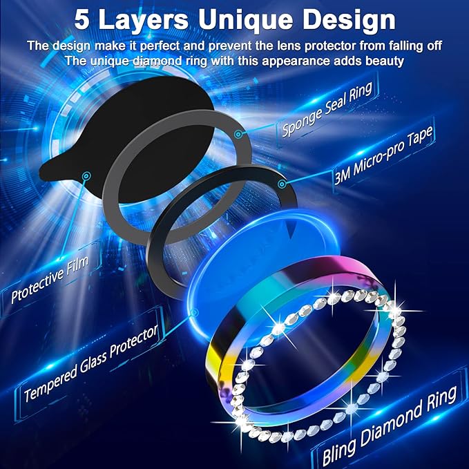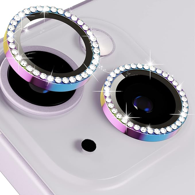 iPhone14/14 PlusとiPhone 15/15plusとiPhone 16/16plus用 カメラレンズカバー カメラフィルム チタン合金製 iphone14/15/16用カメラレンズ保護フィルムガラス キラキラ 耐衝撃 防塵 高透過率 露出オーバー防止 キズ防止 黒縁取り 硬度9H 全面保護 貼り付け簡単(マルチカラー)