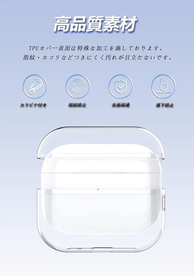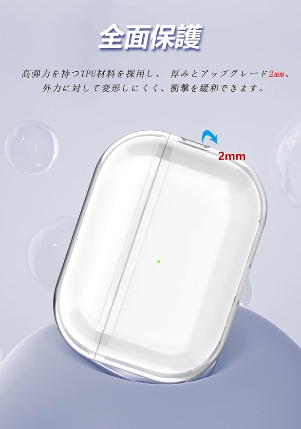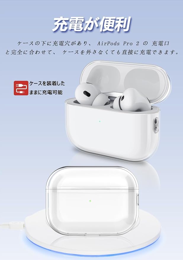 ?【高品質素材】透明度の高い高品質TPUで製作されるので、手触りが良くて耐久性が抜群です。AirPods Pro 2本来のデザインを損なうことのない、シンプルで高級感のある仕上がり。