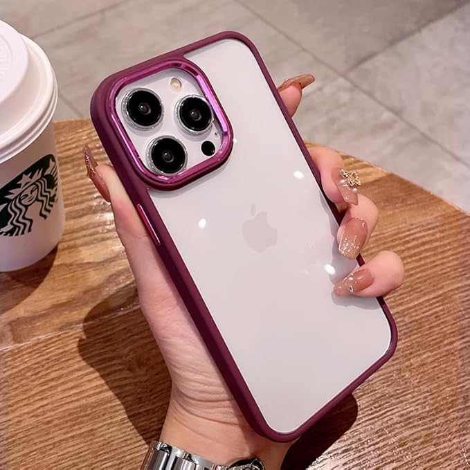 iPhone14 Pro Max ケース ストラップホール付き クリア 透明 iPhone 14 Pro Max カバー 2色 配色 薄型 可愛い レディース iPhone14ProMax 背面ケース ハードケース (iPhone14 Pro Max, 梅色)