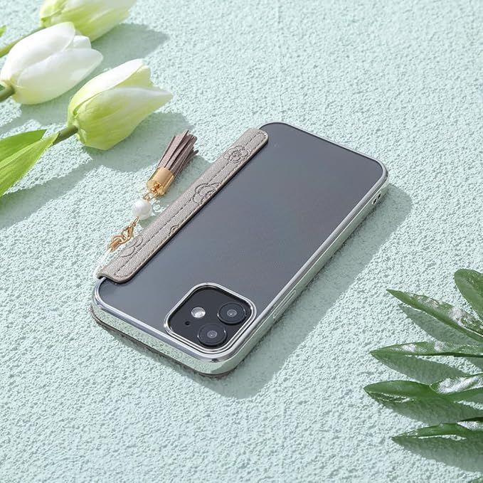 レザーケース iPhone14 手帳型 おしゃれ マグネットなし 押し型の花柄 iPhone14 手帳型携帯カバー 使いやすい シンプルなデザイン 手触り良い 真珠タッセル付き アイフォン14 カバーケース 鏡付き 軽量ケース アイフォン14 手帳型ケース ストラップ付き 可愛い 安い 薄い 軽い アイフォン14手帳ケース 全面保護 耐久性 アイフォン14 手帳型携帯ケース 多機能 灰色