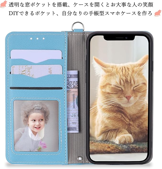 iPhone14 スマホケース 手帳型 猫 可愛い エンボス工芸 6.1インチ 2022モデル iPhone 14 レザーケース おしゃれ おもしろ ショルダー改造可能 シンプル 男女通用 大人 防水 iPhone 14 手帳型ケース 耐衝撃 使いやすい ストラップ付きケース iPhone14 手帳型携帯ケース スタンド機能 便利 上品 薄型 キャラクター アイフォン14 手帳型ケース マグネット付き ベルト無し ブルー