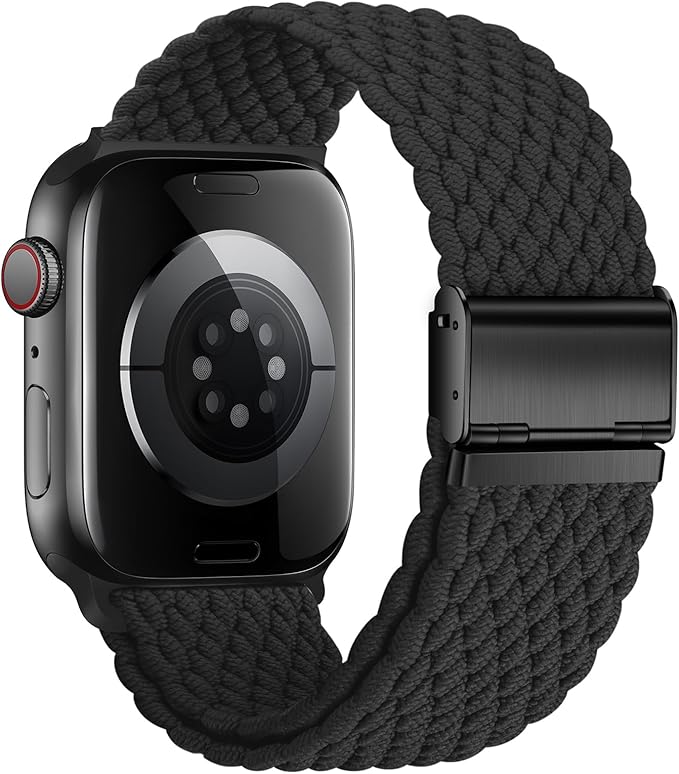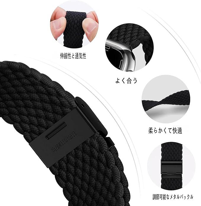 コンパチブル Apple Watch バンド ブレイデッドソロループ 伸縮バンド ナイロン素材 無段階調整 快適で通気性 のスポーツベルトアップルウォッチシリーズ 10 9 8 7 6 5 4 SE Ultraに対応 (49mm/46mm/45mm/44mm, ブラック)