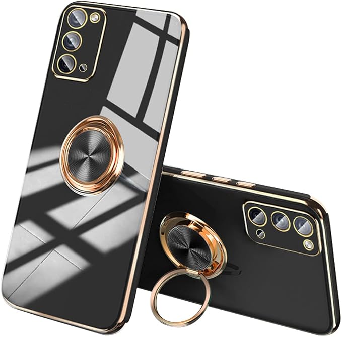 JOOBOY Galaxy s22 用 ケース ギャラクシー s22 5G 用 ケース リング付き メッキ加工 レンズ保護 tpu ソフト ストラップホール付き 耐衝撃 スリム おしゃれ スマホケース 携帯カバー ギャラクシーS22 用 カバー (Galaxy S22, ブラック)