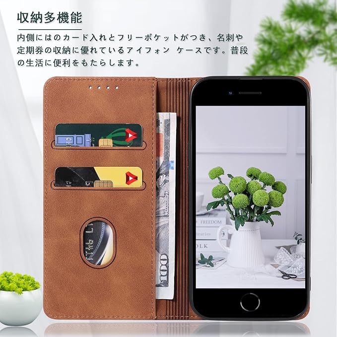 iPhone SE ケース 手帳型 第2世代 第3世代 iPhone8 iPhone7 iPhone se3 スマホケース 携帯カバー レザー 軽量 薄型 耐衝撃 耐摩擦 全面保護 マグネット式 カード収納 スタンド機能 se 4.7インチ対応 (iPhone8