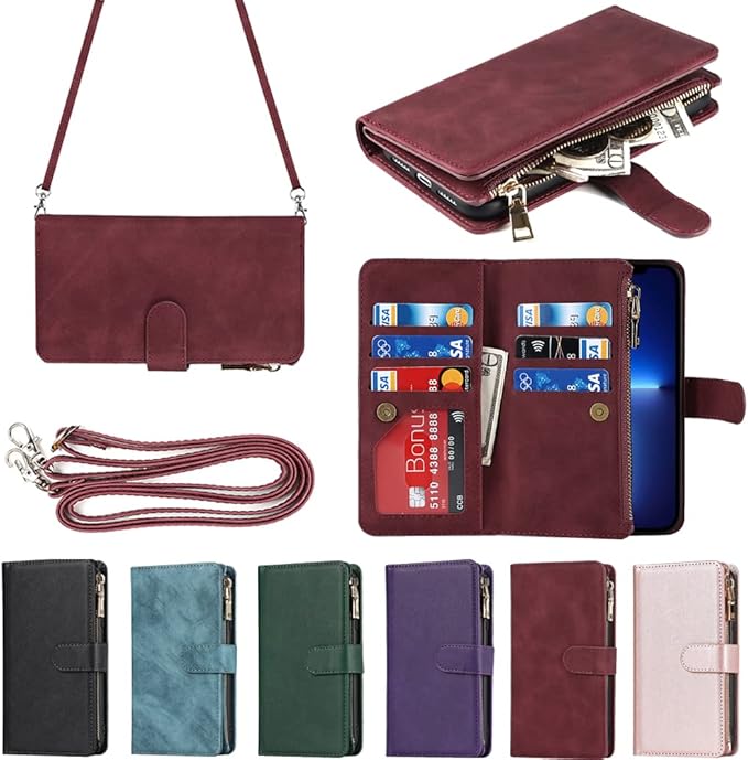 Eastwave アイフォン14 Pro Max ケース iPhone 14promax 縄掛けケース iPhone 14 Pro Max 手帳型 財布型 ICカード コインポケット ストラップ付き カード 収納 小銭入れ ファスナーポケット付き PUレザー 6色
