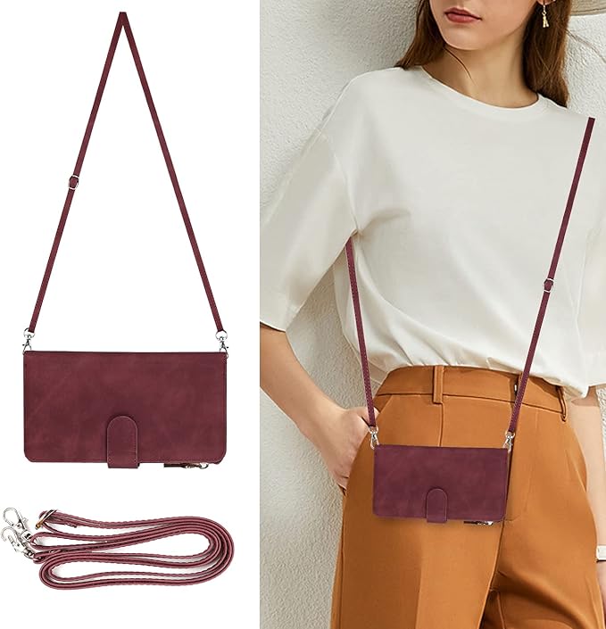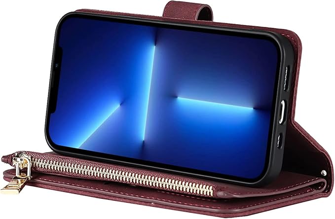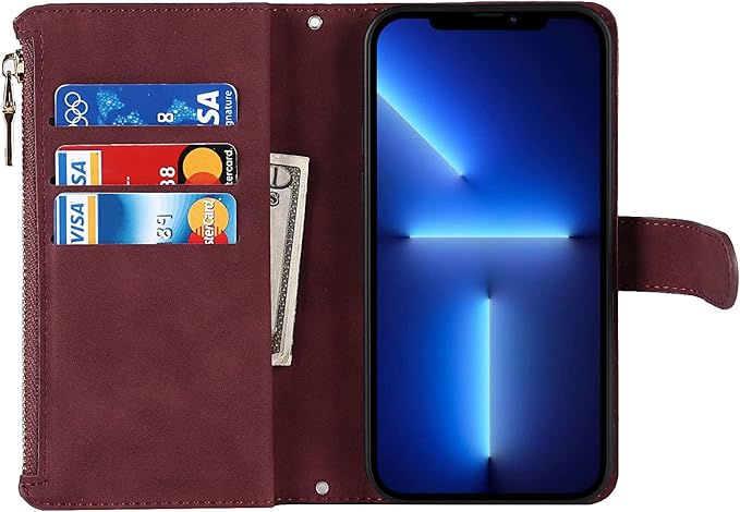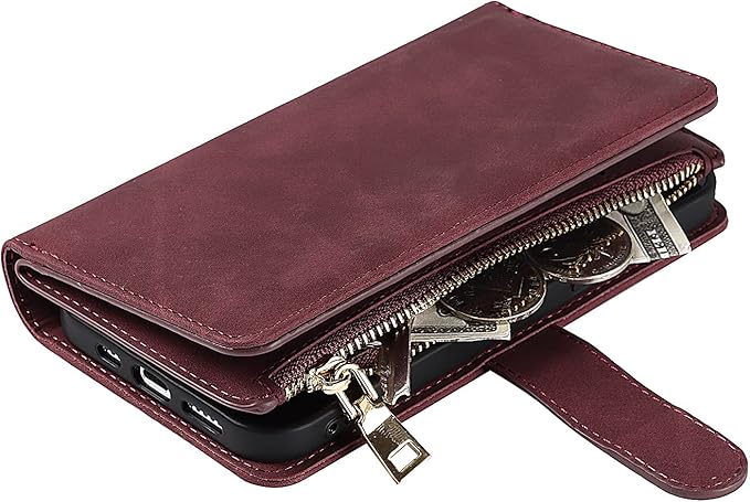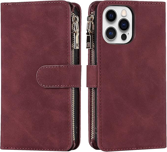 Eastwave アイフォン14 Pro Max ケース for iPhone 14promax 縄掛けケース for iPhone 14 Pro Max 手帳型 財布型 ICカード コインポケット ストラップ付き カード 収納 小銭入れ ファスナーポケット付き PUレザー 6色レッド
