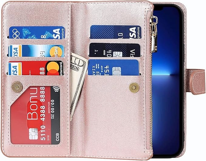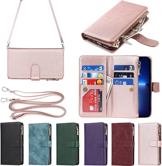 Eastwave アイフォン14 Pro ケース for iPhone 14pro 縄掛けケース for iPhone14 Pro 手帳型 財布型 ICカード コインポケット ストラップ付き カード 収納 小銭入れ ファスナーポケット付き PUレザー 6色ピンク