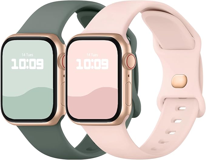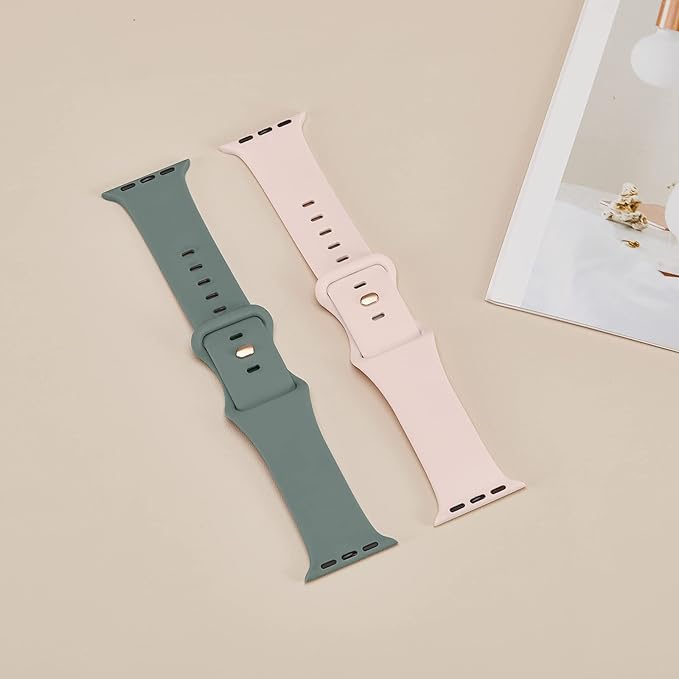コンパチブル Apple Watch バンド 49mm 46mm 45mm 44mm 42mm アップルウォッチ バンド シリコン製 スポーツバンド iwatch Series 10/9/8/7/SE/6/5/4/3/2/1/Ultra/Ultra2 交換ベルト 通気 柔らかい 防水 耐衝撃 男性 レディース オリーブグリーン/ピンクサンド
