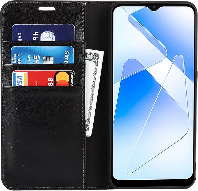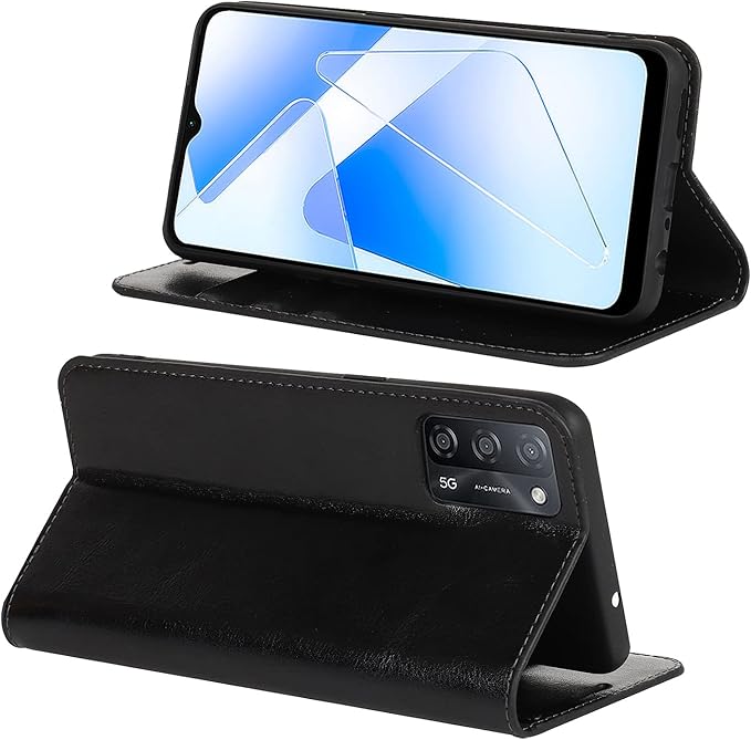 Eastwave Oppo A55s 5G ケース Oppo A55s 5G 手帳型 ケース カバー OppoA55s 5G ケース 財布型 カバー 収納ポケット 牛革製品 ポケット収納付き 横置きスタンド機能 落ち着くデザイン オシャレ 4色 ブラック