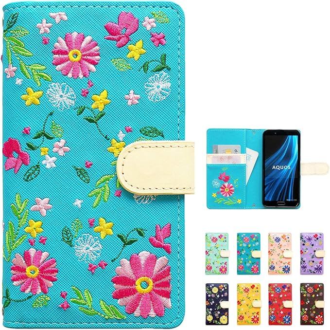 iPhone 14 plus 手帳型 ケース カバー iPhone14plus iPhone14plusケース iPhone14plusカバー iPhone14plus手帳ケース iPhone14plus手帳型ケース 手帳ケース 手帳型ケース スマホケース ちょいヌメ花刺繍 ターコイズ