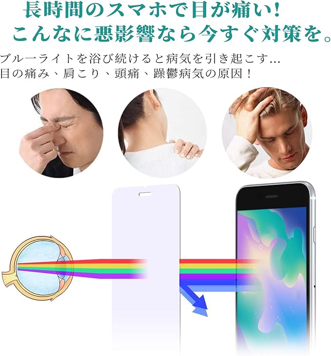 【ブルーライトカット】 iPhone SE2 用 iPhone SE3 用 ガラスフィルム ブルーライト iphoneSE 第2世代 / 第3世代 用 液晶保護 フィルム アイフォンSE 2020/2022 用 強化ガラス 【指紋防止/干渉しない/貼り付け簡単/2枚セット】