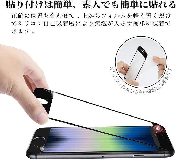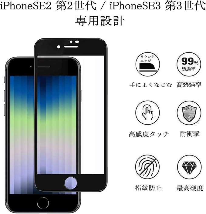 【2枚セット】 iPhone SE2 iPhone SE3 用 ガラスフィルム iPhoneSE 第2世代 / 第3世代 アイフォン SE2 SE3 用 あいふおん SE 2020 2023 用 液晶保護 フィルム 強化ガラス 【指紋防止/気泡ゼロ/干渉しない/貼り付け簡単】