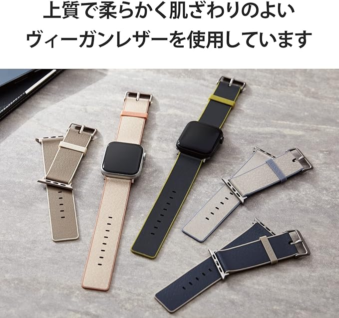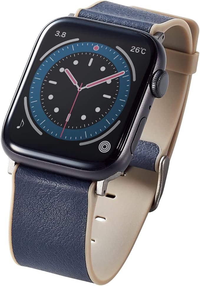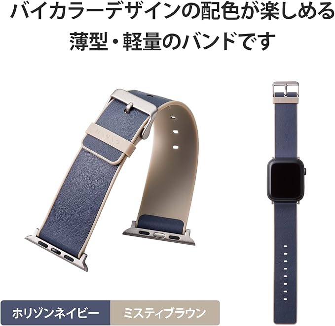エレコム Apple Watch (アップルウォッチ) バンド 49mm 45mm 44mm 42mm レザー 革 TPU [上質で柔らかなヴィーガンレザーを使用] 【Apple Watch Series Ultra/8/7/SE2/SE/6/5/4/3/2/1 対応】 ホリゾンネイビー×ミスティブラウン AW-45BDMNONV