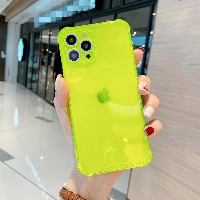 Gradoo For iphone 14 pro蛍光色クリアケース For iphone 14 13 12 11 プロマックスミニ XR XS × 8 7 6 プラス SE 3 無地カメラ保護シリコンカバー-bright yellow-For iPhone 14