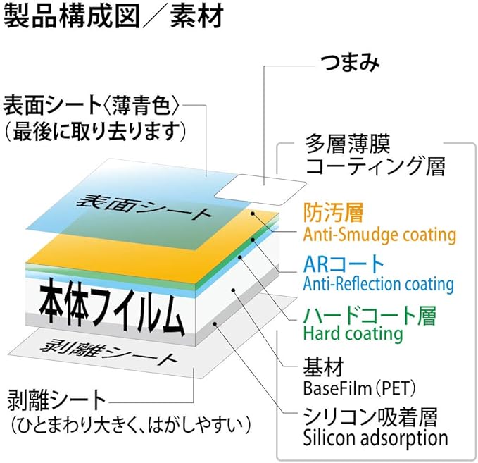 アンチリフレクション、ハードコーティングを採用。 安心の日本製。