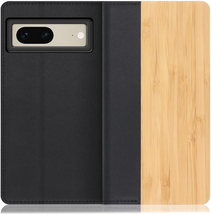 LOOF Nature Series Google Pixel 7 Pixel7 用 ピクセル ケース 手帳型 カバー 本革 天然木 ベルト無し ウッド 木製 木 カード収納 カードポケット 本革 高級 スタンド機能 手帳型ケース スマホケース (竹)