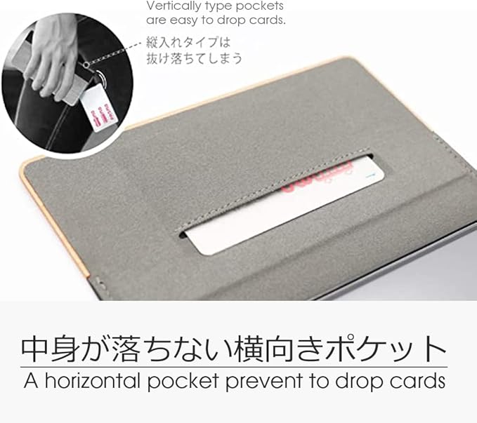 横入れタイプのカードポケットは逆さにしてもカードが抜け落ちる心配がありません。