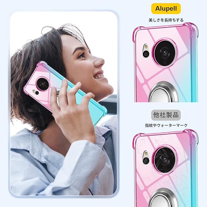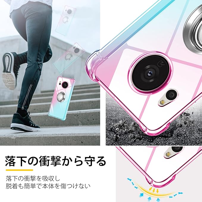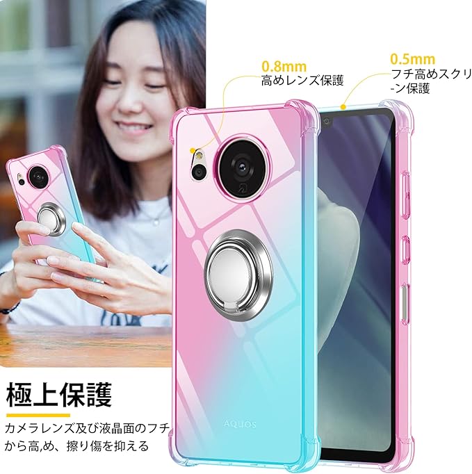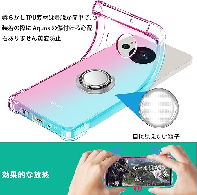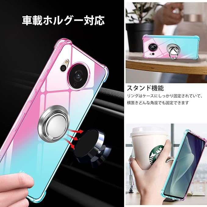 AQUOS sense7 Plus ケース リング TPU 薄型 軽量シリコン グラデーション色 ケース sense7plus カバー 耐衝撃 指紋防止 車載ホルダー対応 防塵 一体型 人気 携帯カバー(ピンクグリーン)