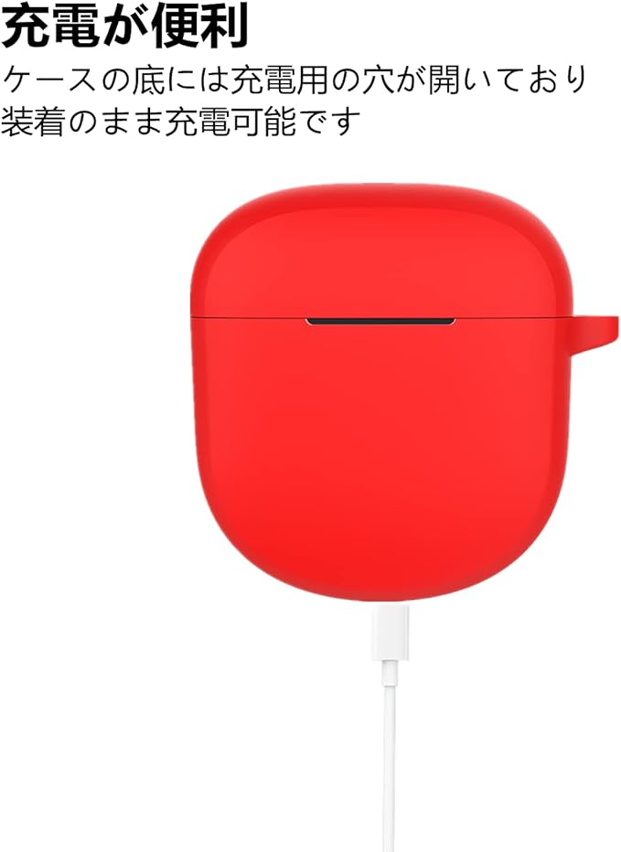 Ankersaila ケース適応 Bose QuietComfort Earbuds II,シリコンケース 全面保護カバー 落下防止 耐衝撃 紛失防止 装着充電可能 カラビナ付き (赤)
