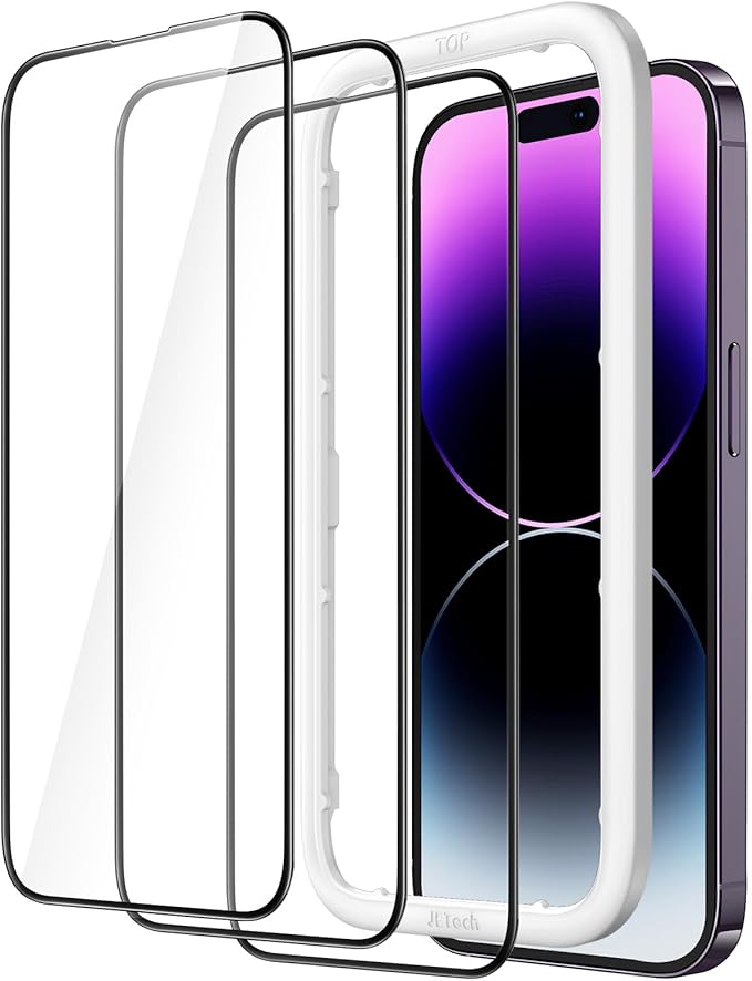 JETech iPhone14promax(iPhone14 Pro Max 6.7インチ用) 全面保護フィルム 強化ガラスフィルム 黒縁 ガイド枠付き ケースに干渉なし HDクリア 3枚セット
