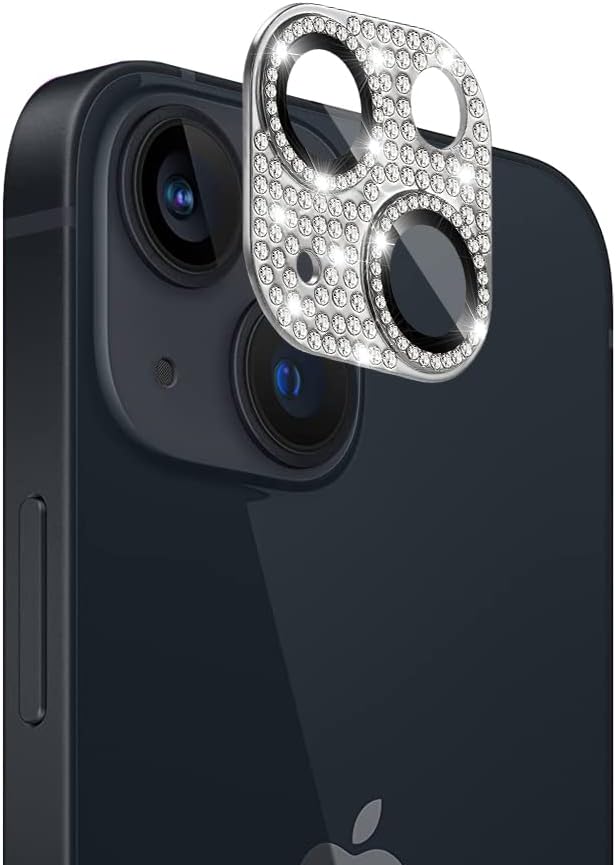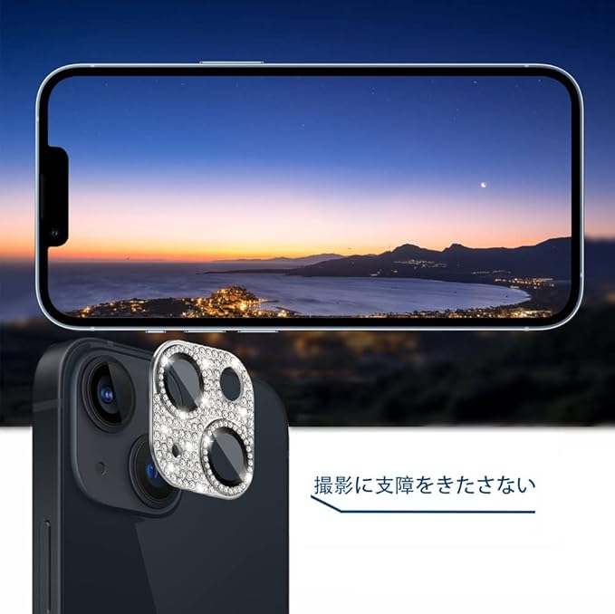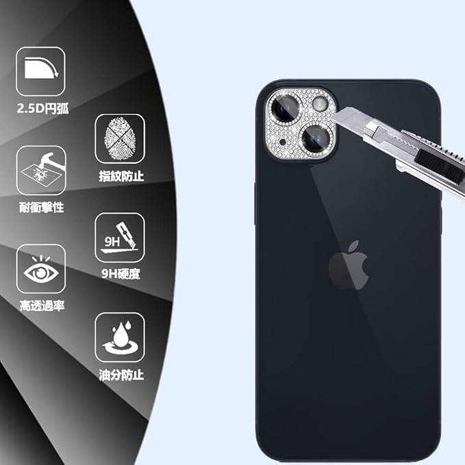 iPhone 14 / iPhone 14 Plus カメラフィルム レンズカバー カメラ保護 ラインストーン【アルミ合金縁取り+強化ガラス】 AnnTec iPhone 14 / iPhone 14 Plus 対応 レンズ全体保護 露出オーバー防止 キラキラ レンズ保護フィルム 携帯電話の装飾 貼り付け簡単 高透過率 【ブラック】