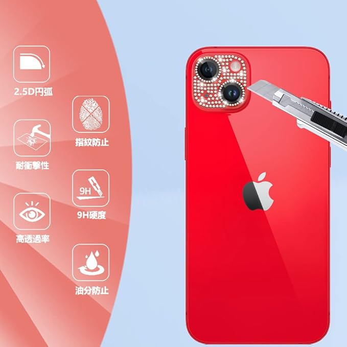 iPhone 14 / iPhone 14 Plus カメラフィルム レンズカバー カメラ保護 ラインストーン【アルミ合金縁取り+強化ガラス】 AnnTec iPhone 14 / iPhone 14 Plus 対応 レンズ全体保護 露出オーバー防止 キラキラ レンズ保護フィルム 携帯電話の装飾 貼り付け簡単 高透過率 【あかいろ】