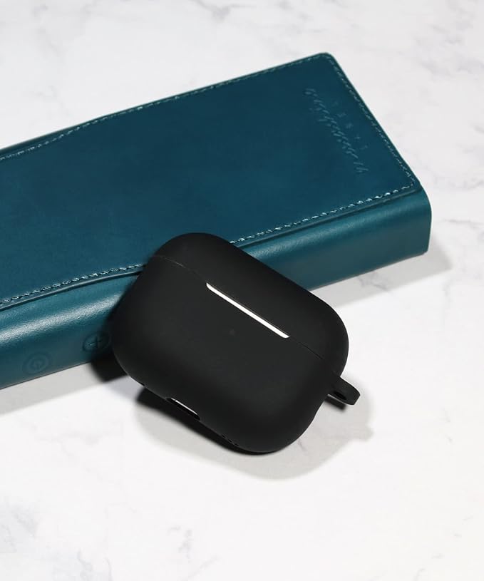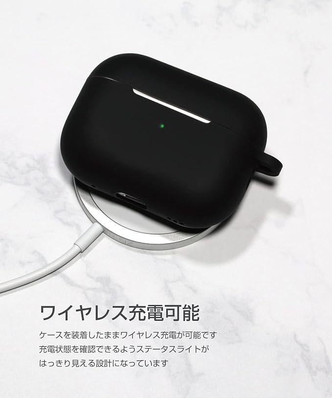[musashino LABEL] AirPods Pro第2世代用シリコンカバー (Black) シリコン製 保護カバー 装着充電可能 ワイヤレス充電可能 LED確認可能 さわさわシルキー加工 武蔵野レーベル 黒