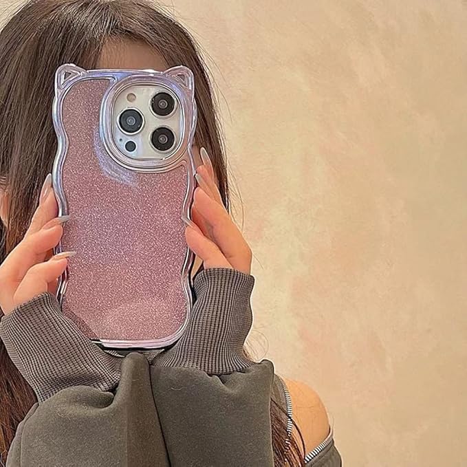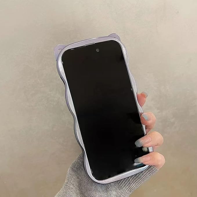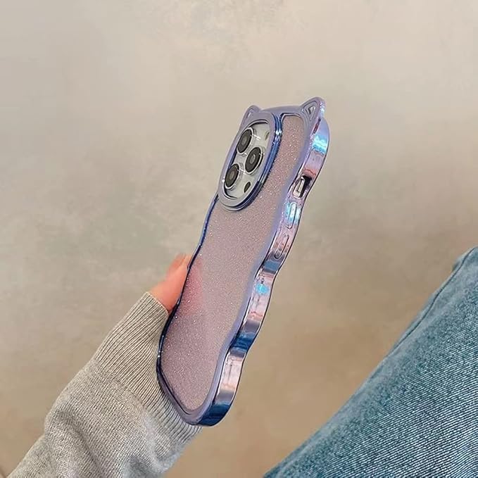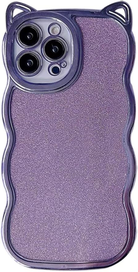 【Kunyehdo】 スマホケース iPhone 14 Pro Max ケース カバー 対応 メッキ 光沢 ピンク 青 紫 緑 閃粉 猫耳 猫柄 キラキラ おもしろ iPhoneケース 女 軽贅沢 かわいい 薄型 スリム 人気 おしゃれ 韓国 お洒落 立体 波形 全面保護 シリコンゴム 創意 落下防止 ソフトケース (iPhone14 Pro Max,紫)